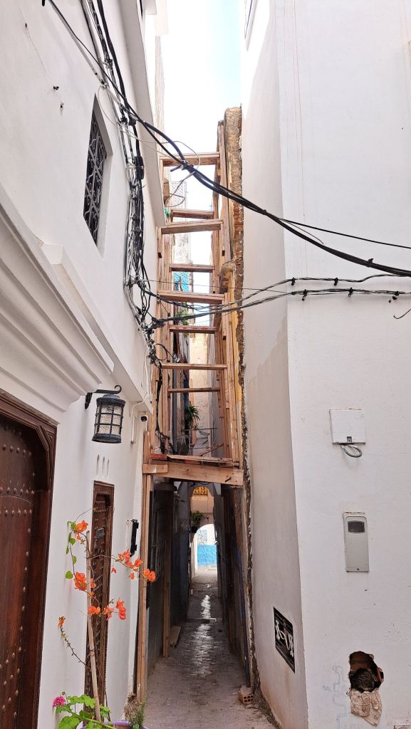 Kävin kävelyllä, kauppaa ja apteekkia etsin. Mikään ei meinaa olla auki. Kyllä raksalla töitä tehdään, mutta kaupat on valikoidusti auki. Yhtään apteekkia en löytänyt mutta yhden kaupan lopulta. Löytyi vettä ja hammasharjakin. Mutta palvelu näissä on erikoista, kahden kokemuksen perusteella aina laitetaan tuotteet tiskille ja sitten odotetaan. Nyt meni kymmenisen minuuttia, sitten joku tuli portaita alas ja edessäni oleva herra sai ostoksensa tehtyä. Sitten minun vuoro. 2 häiskää siinä seisoskeli tekemättä mitään, lopulta toinen löi kassaan ja puhui Ranskaa, toinen pakkasi pussiin. Meinasi kyllä pakata myös 3 purkkia hunajaa mukaan, sain vältettyä vaikkei yhteistä kieltä sanaakaan ollut. Merci sanoin kyllä lopuksi. En tiennyt myöskään mitä tulisi maksaa niin näytti ruudulta 62DAR, sitten löi laskukoneeseen 72. Hinta sitten pompsahti, näinköhän kassahenkilö nautti omaan taskuunsa sen euron turistilisän? Mutta tavoite saavutettu, testattu että käveleminen korttelin ympäri onnistuu. Hiki kyllä tuli, mutta tulkoon. Kyllä tästä Kasbahiin lähdetään rockaamaan Clashin vanavedessä! En kyllä tiedä mistä se biisi kertoo enkä nyt jaksa perehtyäkään. Mutta käsitin että Kasbah on ollut yläkaupunkia ja valtaapitävien keskusta. Ja heti siinä vieressä Medina, joka nyt vaan tarkoittaa vanhaa kaupunkia. Tämä on ymmärrykseni taso tässäkin asiassa, varsin pintapuolinen. Mihinkään kun ei perehdy, niin missään ei pety?