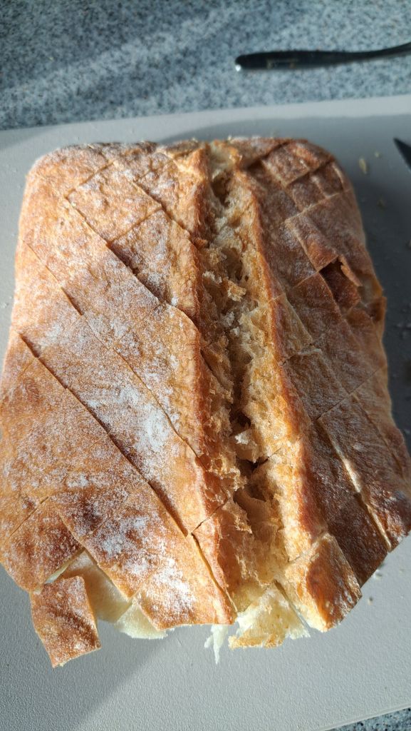 Kokeillaan tehä jotain valkosipuli, voi, yrttileipää pöhiskössä, vanhasta vähän kuivettuneesta leivästä.