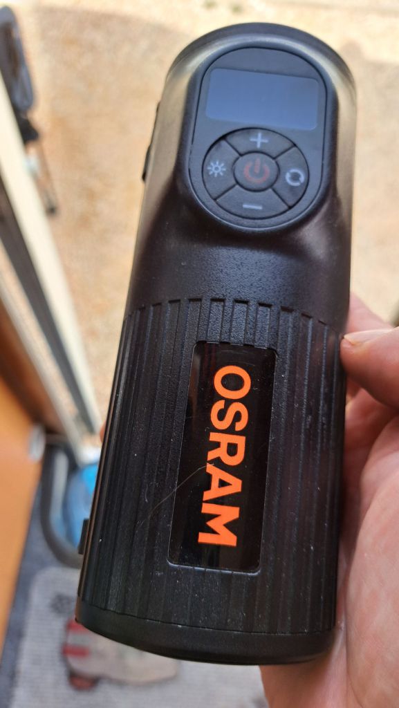 On muuten kätevä peli tällainen pumppu! Pyörän kumit kun tyhjenee niin hietön ilmavirta kulkee kumin sisään. Kai sillä hätätilassa autoonkin, hitaasti kun, taukoja pitäen.