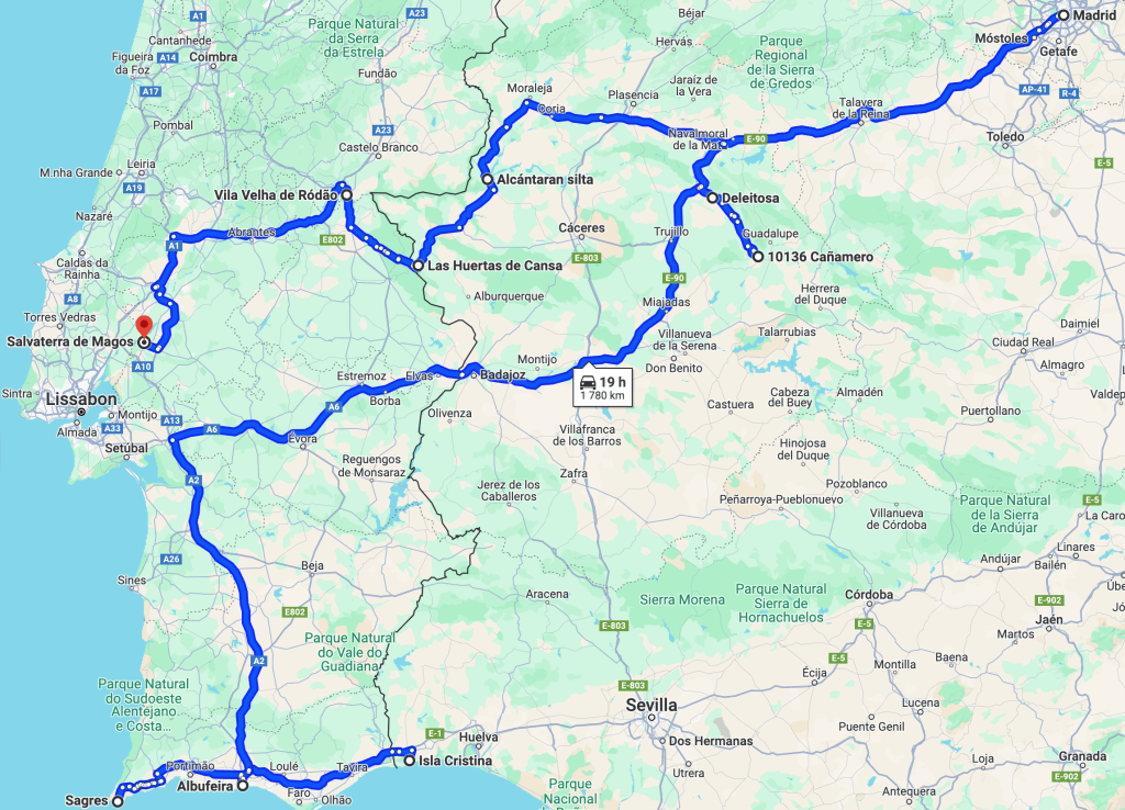 Sitten vähän Portugalia, Espanjaa ja taas Portugalia. Motokisoissakin käytiin ja siellä oli kuuma! Monenmoista kivikautista nähtävyyttä, isoja ja pieniä kaupunkeja, monta tapasta ilmaiseksi ja maksettuna. No eikai ilmaista mikään, mutta hyvin mielikuva asetettu kuitenkin. Ja hyviä ne on, mieluusti vaihtaisin tätä meidän ruokakultuuria hieman eteläeurooppalaisemmaksi. Pienempiä ja parempia annoksia useammin.