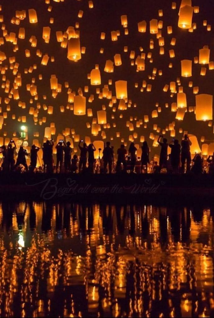 Meni sitten Lanternkin vähän niiku penkin alle, oltiin menossa sinne järvelle niin paikallinen sanoi että turha sinne asti sama on tässä joella. Lähellä niin mentiin siihen sitten. Oli se, mutta laitettiin tuikkuja jokeen, ei ehkä niin hienoja kuvia. No vissiin sama ajatus kuitenkin, vainajille ja silleen.