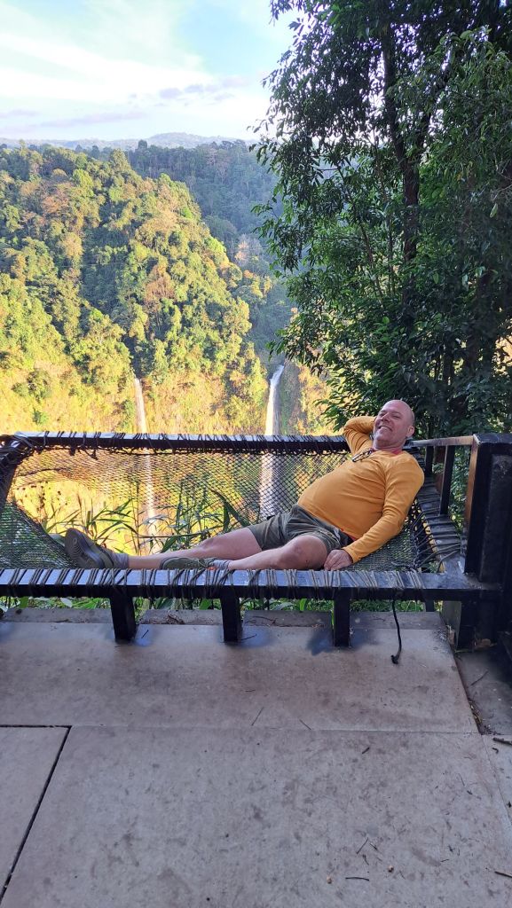 Vuokrattiin mopot ja zipline hommia tutkimaan. Aika korkeella on kyllä. Uskallus on koetuksella. Oon mie tietty liitovarjolla, riippuliitimellä ja laskuvarjollakin mennyt, mut tässä ei voi oikein mitenkään itse vaikuttaa niin hirvittää.